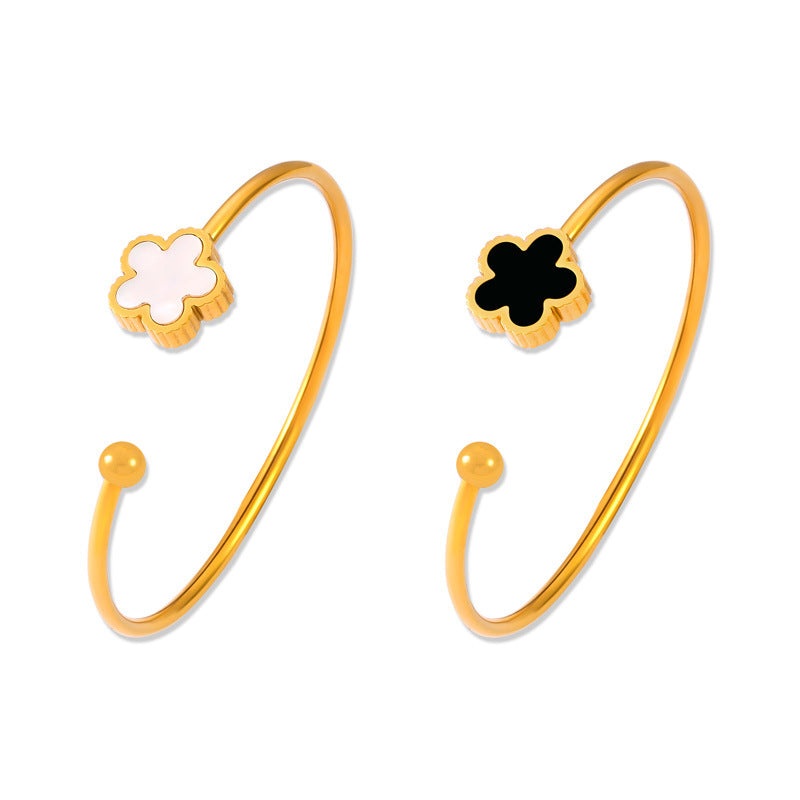 Elegant Korean White Shell Acrylic Flower Bracelet crafted in Titanium Steel
