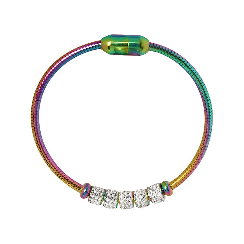 Discover Your Timeless Elegance Exquisite Craftsmanship: Elevate your style with this European and American-inspired bracelet featuring intricate inlaid rhinestones. Personalized Magnet Buckle: The stainless steel magnet buckle ensures a secure and comfort