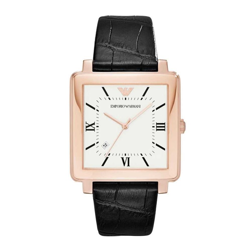 EMPORIO ARMANI ANALOG QUARTZ ROSE GOLD STAINLESS STEEL AR11075 BLACK LEATHER STRAP MENS WATCH