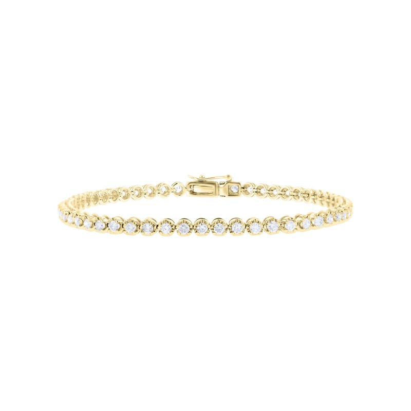 Introducing one of Stevens most classic bracelets. The Endless Diamond Tennis Bracelet features 2 carats total weight in bright white round brilliant diamonds set in a beautiful basket style setting. Basket settings feature prongs that secure the diamond while keeping it set low and optimize the amount of light to pass through. Pick your preference of 14 karat white, yellow, or rose gold. Choose from an array of carat weights and your choice of 14 karat gold to personalize your style with our Endless classic tennis bracelet.