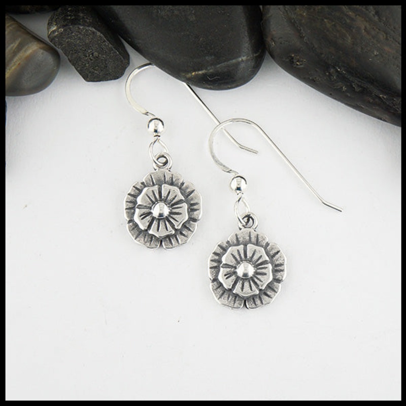 English Rose Earrings in Sterling Silver inspired by Florin coins.Click to view matching pendant.Click to view as a pendant and earring set.Product Number: SW3521Original designs Stephen WalkerPlease call or email for more information800.488.6347orservice@