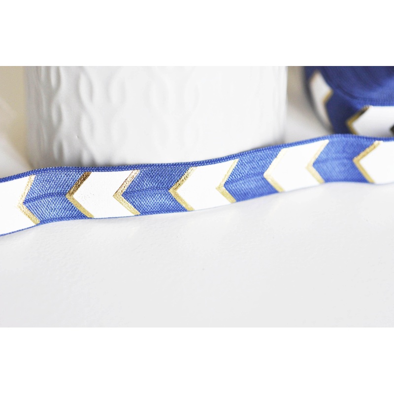 EFJF gold blue chevron pattern elastic ribbon, jewelry making, EVJF bracelet, wedding ribbon, creative supply, scrapbooking, 16mm, 1 meter A magnificent elastic ribbon printed with chevrons and gold hot stamping, an elegant and refined supply for your hen