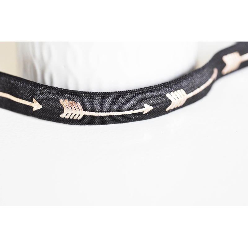 A magnificent elastic ribbon printed with an arrow in copper-colored hot stamping, an elegant and refined supply for your hen parties, your scrapbooking creations, jewelry creation, your announcements and small wedding gifts and others DIY creations