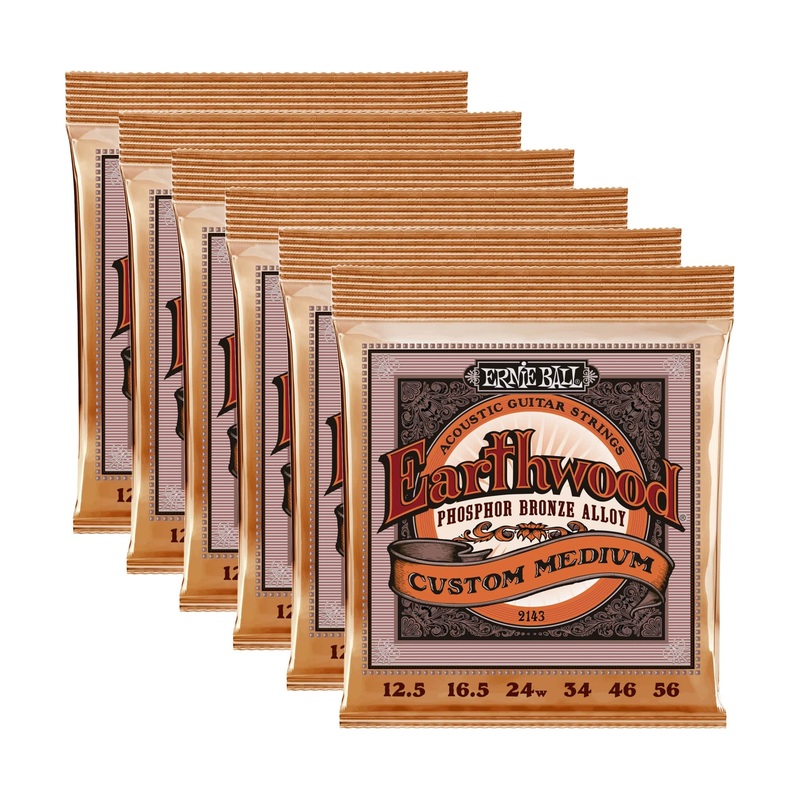 This Bundle Includes:6 x Ernie Ball Earthwood Custom Medium Acoustic Strings Phosphor Bronze 12.5-56Ernie Ball Earthwood Phosphor Bronze Acoustic Guitar Strings are made from 92% copper, 7.7% tin, 0.3% phosphorus wire wrapped around tin plated hex shaped s