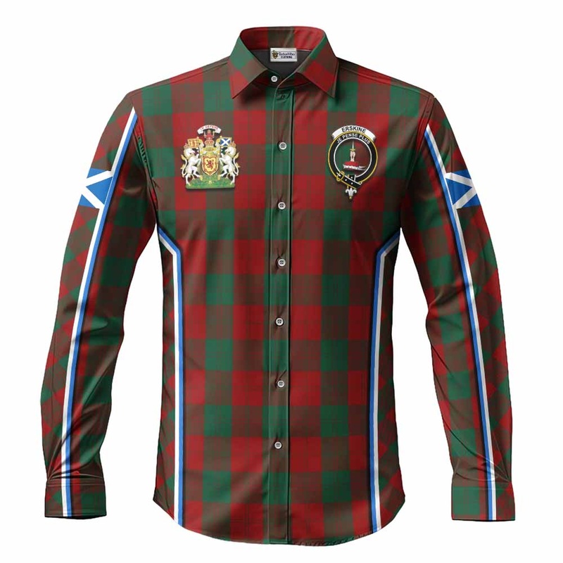 Erskine Tartan Crest Long Sleeve Button Shirts Scotland Coat of Arm Flag Style