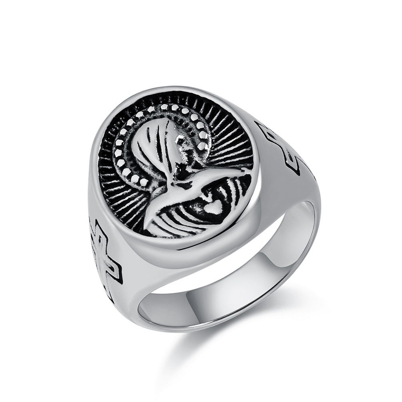 Discover the timeless elegance of our Europe and the United States cross-border hot-selling retro style Virgin Mary titanium steel ring. This unique piece is more than just a ring; it's a statement of personality and belief, expertly crafted for both men a