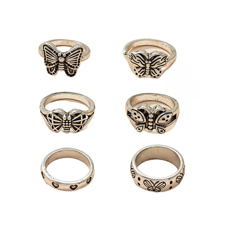 European American Style Vienna Verve Butterfly 6-Piece Ring Set in Retro Fashion