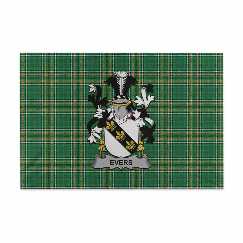 Evers Irish Clan Tartan House Flag with Coat of Arms
