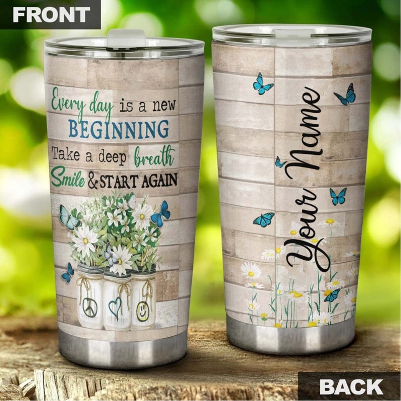 Everyday A New beginning Start again Personalized Butterfly Tumbler-Unique Tumbler-Birthday gift Christmas Gift for Butterfly Lover For HerGift of Love: A meaningful gift for your friends, family members, wife/husband, bridesmaid/groomsmen, coworkers on bi