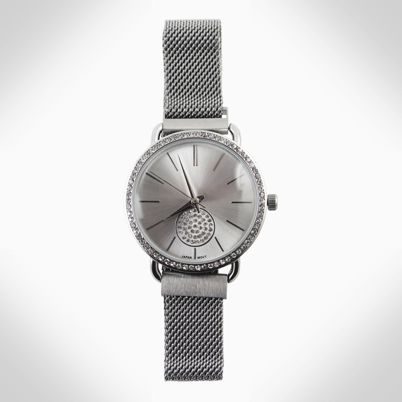 Elegant watch featuring sparkling crystals accents onthe watch face Embellished with crystals, which are set by Jimmy Crystal's expert craftsmanship. This product provides unparalleled aesthetics to transcend elegance Stainless steel case back Magnetic met