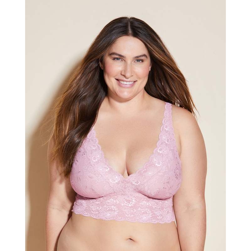 Longline plunge-front wireless bralette designed for Extended/Plus sizes.Soft, stretch, semi-sheer, scalloped lace.Longline band and power mesh lining add support.Non-padded cups with plunge front neckline.Pull-on style with wide, adjustable straps.Hand wa