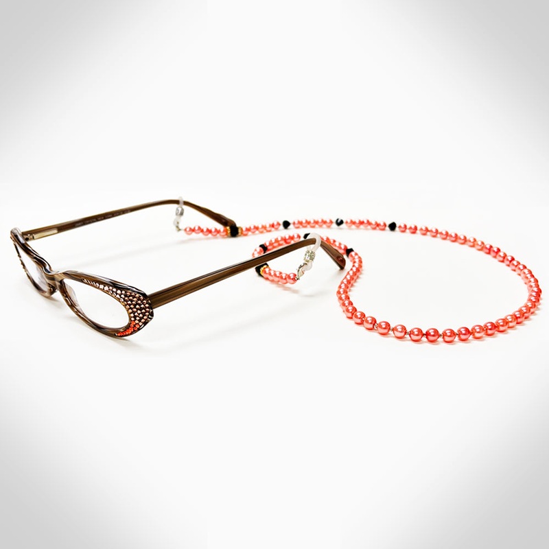 • A luminous chain withpearls shimmers supremely elegant eyeglasses