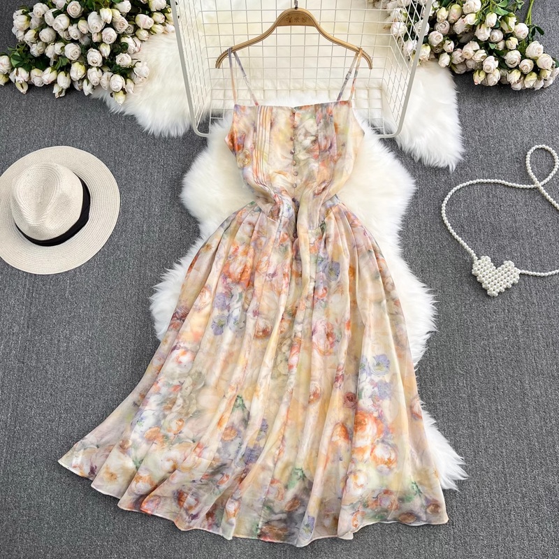 Fairy Floral Chiffon Long Dress A Line Dress Summer 1671