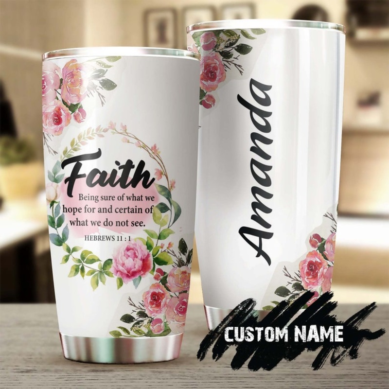 Faith Bible Verse Being Sure Of What We Hope Hebrews 11 : 1 Personalized Tumbler-Birthday Christmas Gift for Jesus Catholic Christians