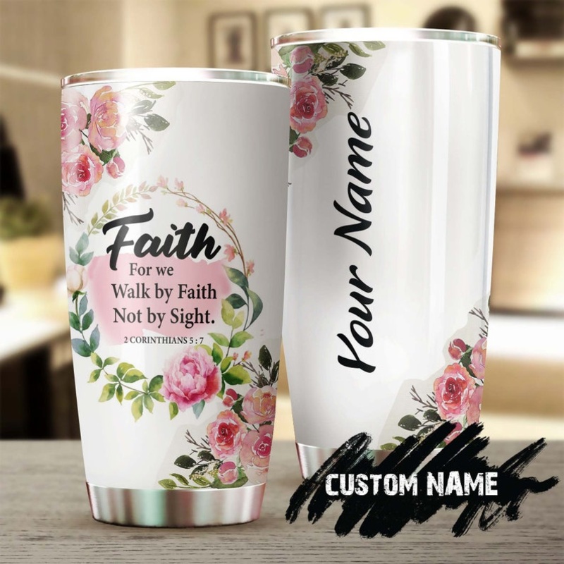 Faith Bible Verse For We Walk By Faith Not By Sight Peony Flowers Personalized Tumbler-Birthday Christmas Gift for Jesus Catholic ChristiansGift of Love: A meaningful gift for your friends, family members, wife/husband, bridesmaid/groomsmen, coworkers on b