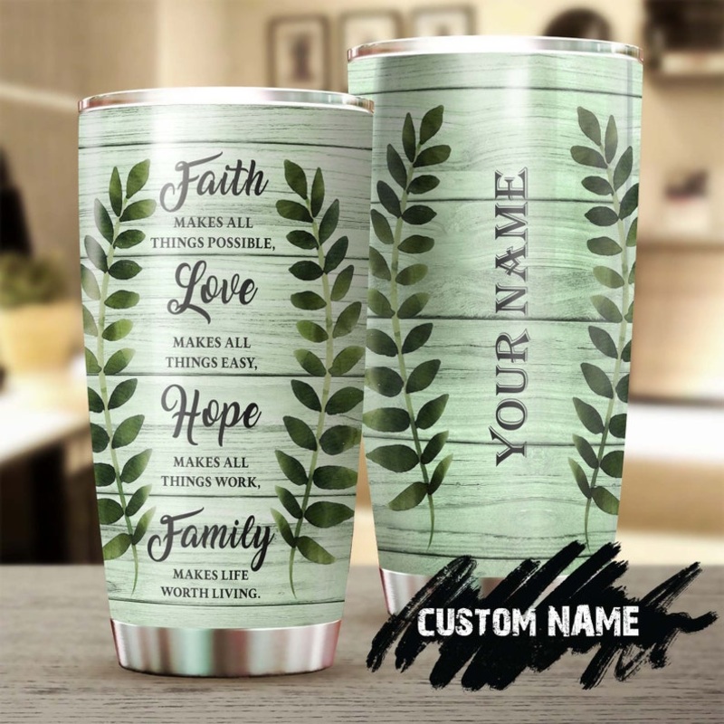 Faith Love Hope Family Make Life Worth Living Personalized Tumbler-Birthday Christmas Gift for family member Jesus lover Catholic Christians