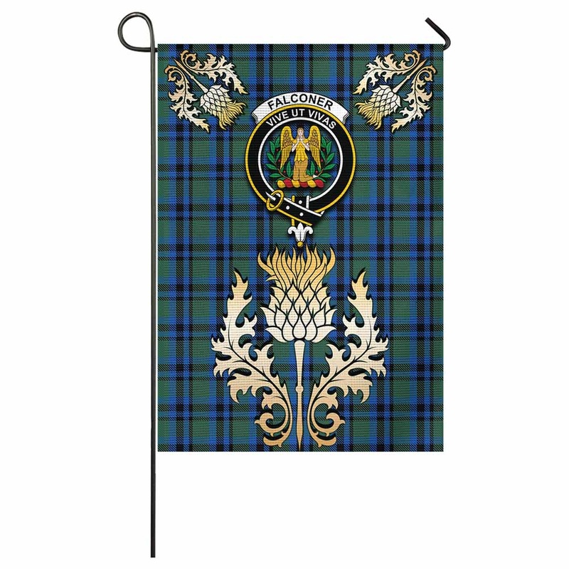 Falconer Tartan Garden Flag with Golden Regal Scottish Thistle Emblem