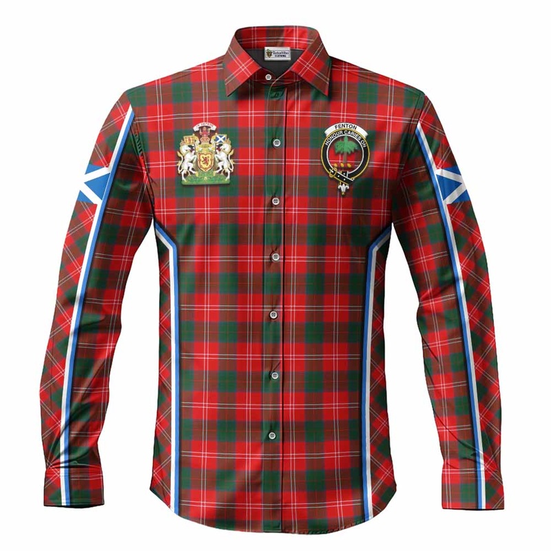 Fenton Tartan Crest Long Sleeve Button Shirts Scotland Coat of Arm Flag Style