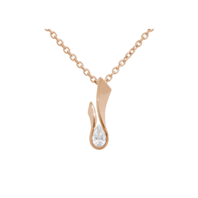 Experience the sensual beauty of a perfectly shaped pendant sparkling against your skin. Slip one on - have a delicious day.SpecificationsMetal quality: Available in 9ct, 14ct, & 18ctRed GoldSetting style: Semi-tensionStone size: ~7x5mm .50ct TDWStone Qual