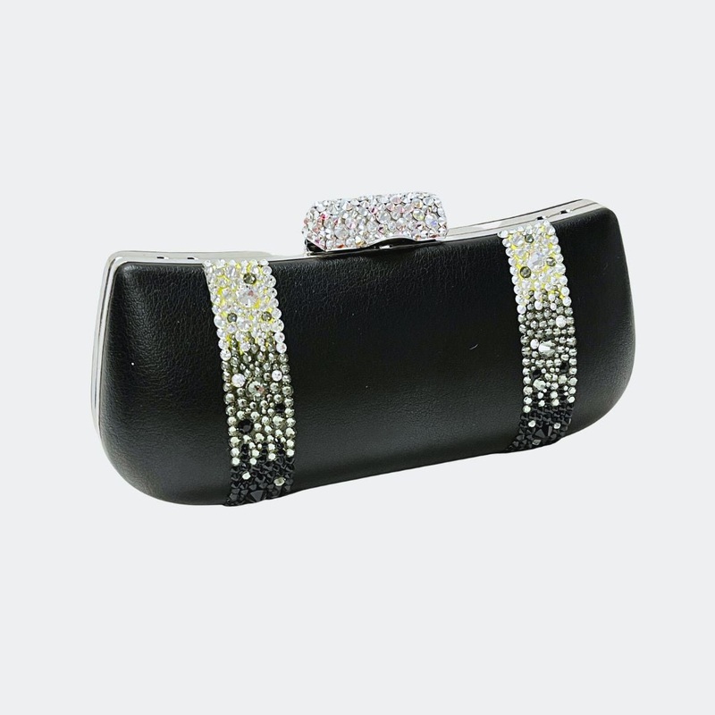 This clutch/shoulder bag features expertly crafted sparkling crystals on syntheticleather, adding remarkable style to your look. It features a metal handle and chain length of 50" and has dimensions of 7.5" x 2" x 3.25". To maintain its shine, store the ba