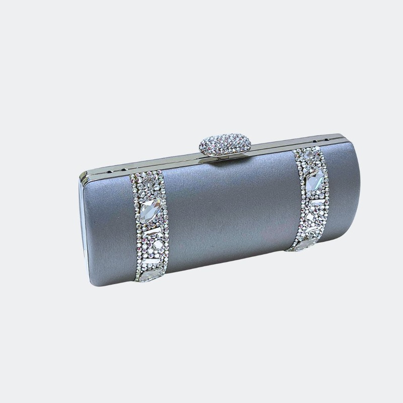 This clutch/shoulder bag features expertly crafted sparkling crystals on fabric, adding remarkable style to your look. It features a handle and chain length of 50" and has dimensions of 7.5" x 2" x 3.25". To maintain its shine, store the bag in either an o