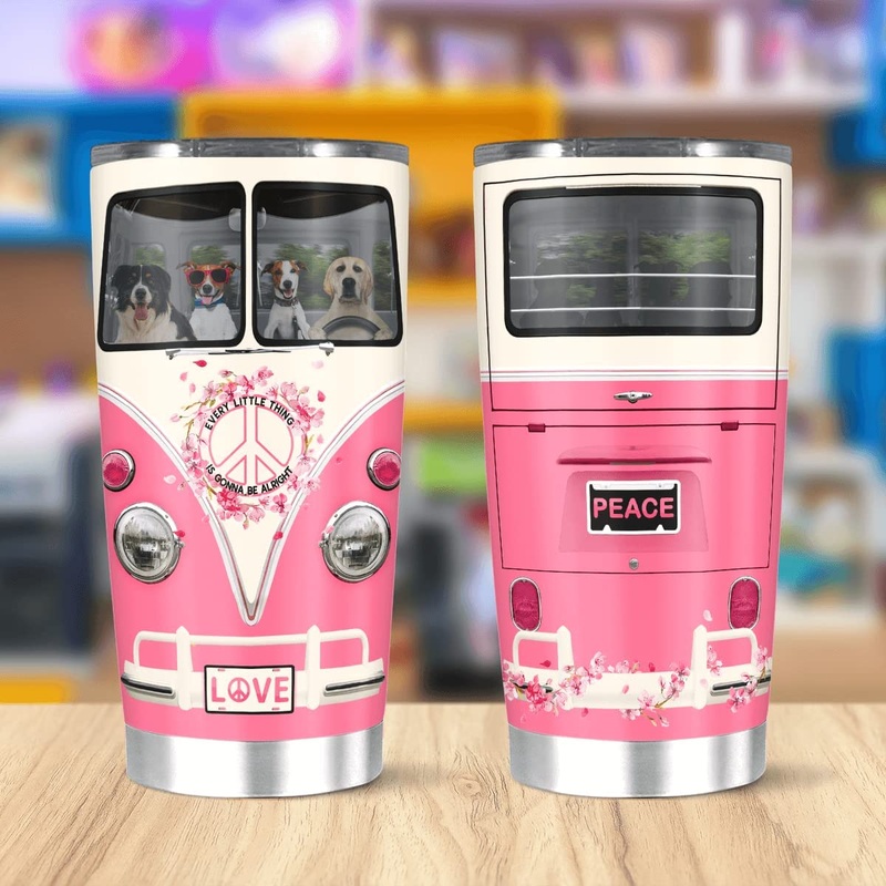 Floral Hippie Car Coffee Tumbler Peace Inspirational Van Metal Drinking Cup Insulated Travel For Dog Lover Birthday Gifts For Women Stainless SteelGift of Love: A meaningful gift for your friends, family members, wife/husband, bridesmaid/groomsmen, coworke