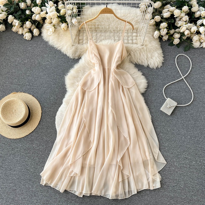 French Fairy Sling Dress Women Ruffles Sweet Skirt 1243