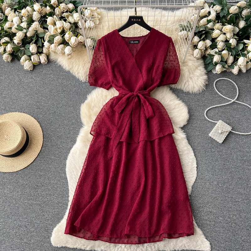 Be the first to review “French V neck Puff Sleeve Dress Summer Sweet Skirt 1103”