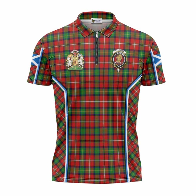 Fullerton Tartan Crest Zipper Polo Shirt Scotland Coat of Arm Flag Style