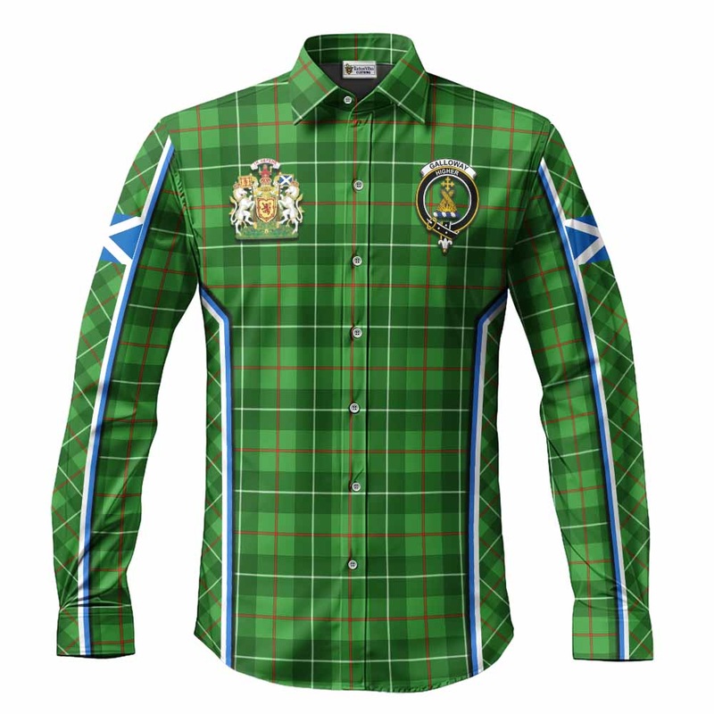 Galloway Tartan Crest Long Sleeve Button Shirts Scotland Coat of Arm Flag Style