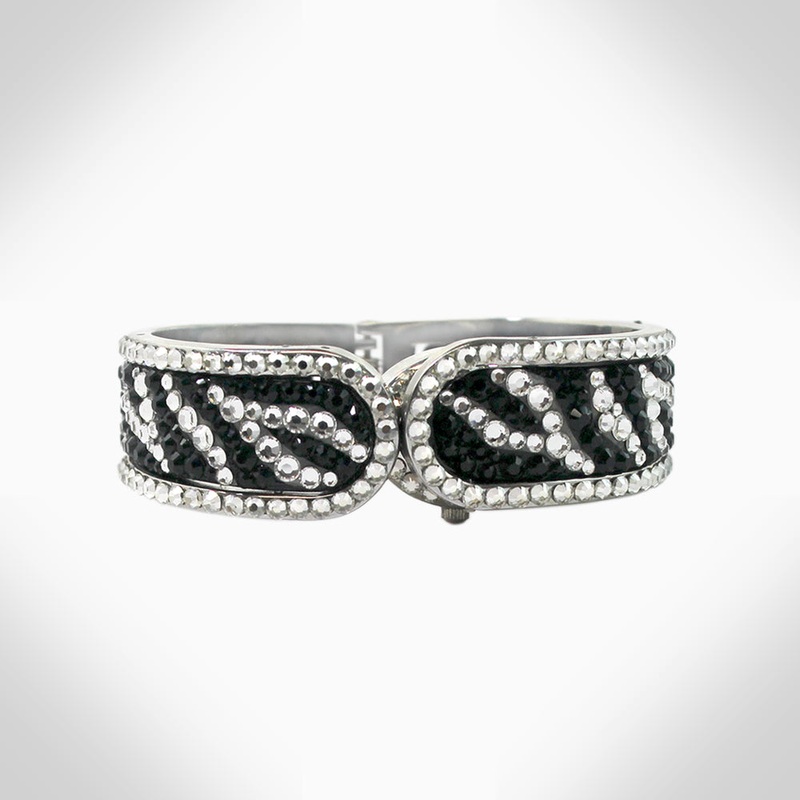Elegant gold-tone, watch featuring sparkling crystals accents on both the bezel & bangle Embellished with crystals, which are set by Jimmy Crystal's expert craftsmanship. This product provides unparalleled aesthetics to transcend elegance. Logo at 12 o
