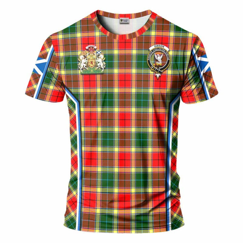 Gibson (Gibbs or Gibsone) Tartan Crest T-shirt Scotland Coat of Arm Flag Style