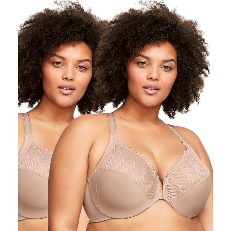 Glamorise Front-Closure T-Back WonderWire Bra 2 Pack – Cafe 34B