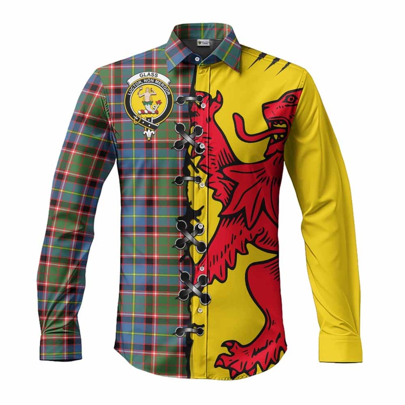 Glass Tartan Family Crest Long Sleeve Button Shirts Lion Rampant HonorHighlightMade by Materials: Four-sided Elastic Fabric.About this itemShowcase your love for Scottish tradition with our Long Sleeve Button-Up Shirt, featuring a striking tartan pattern.