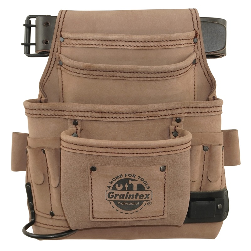Graintex ST2630 10 Pocket Nail & Tool Pouch Top Grain Leather with 2 Leather Belt for Framers, Constructors, Electricians, Plumbers, Handyman