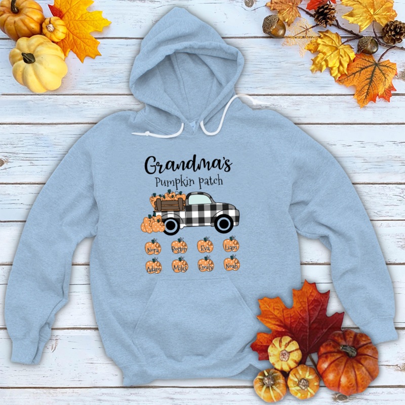 Grandma's Pumpkin Patch Personalized This hoodie is perfect to escape the cold. It covers everything from the hips to the neck, allows the person wearing it to stay toasty at all times. Plus, with the side-front pockets, the phone and the wallet can stay w