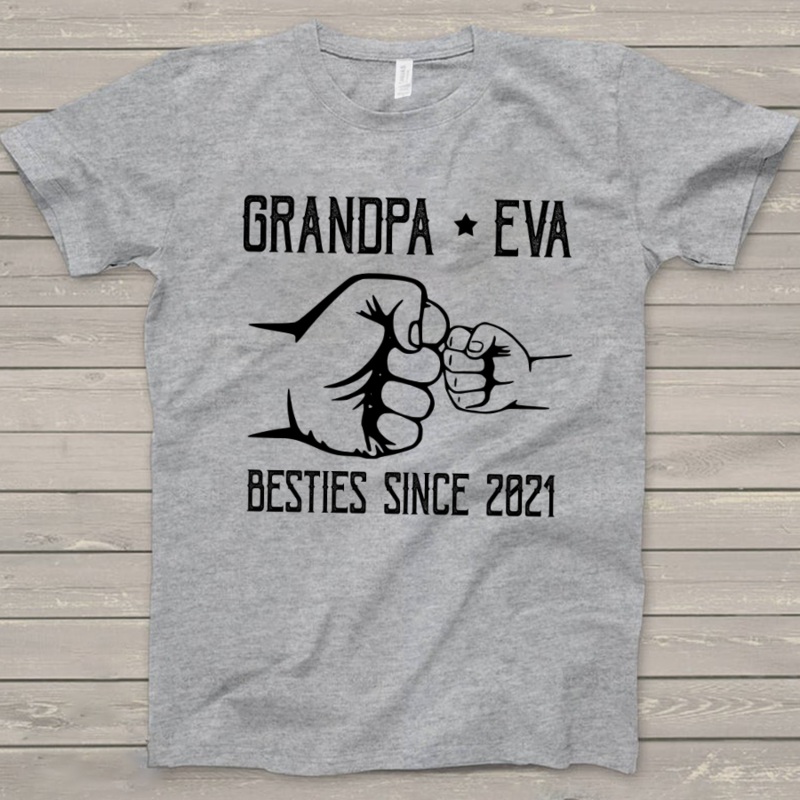 Grandpa Grandkid, Besties Since YearGreat as Birthday gifts or Holiday presents. This adorable item can be designed upon anyone's wish with any title.Please enter:1. Nickname: Papa, Grandpa, Pawpaw, Pop-Pop, Papaw ...etc.2. Kids' Names wanted on the shirt