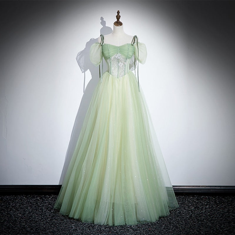 Green Fairy A Line Prom Dress Cute Tulle Formal Party Gown 650