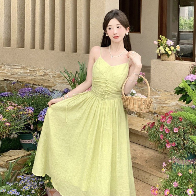 Green Fairy Spaghetti Strap Long Dress Summer Cute Skirt 1080