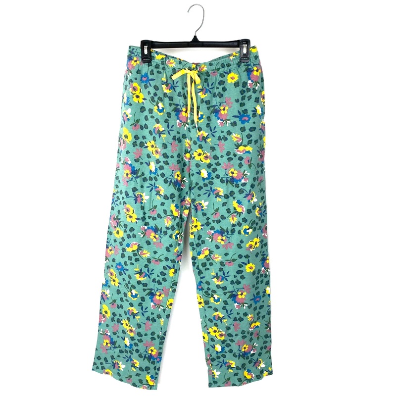 Brand new, donated by the designerCuddl Duds soft light green floral sweatpants with two front pockets, a drawstring waist, and a wide ankle. Floral pattern includes the colors mauve, yellow, white, blue, navy blue, and dark greenSize Small62% Polyester, 3
