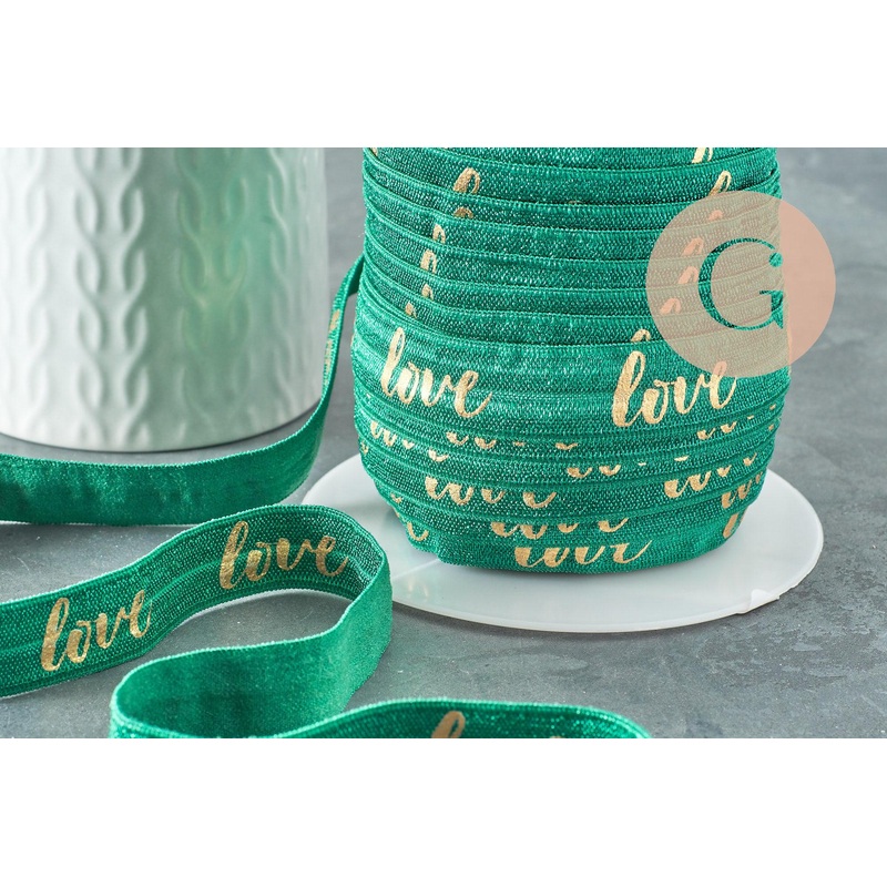 This flat and wide fancy LOVE elastic ribbon will be ideal for DIY couture creations, customization, clothing, as well as for the creation of costume jewelry... You will love this wide elastic ribbon with its gold pattern on a green background. How to use