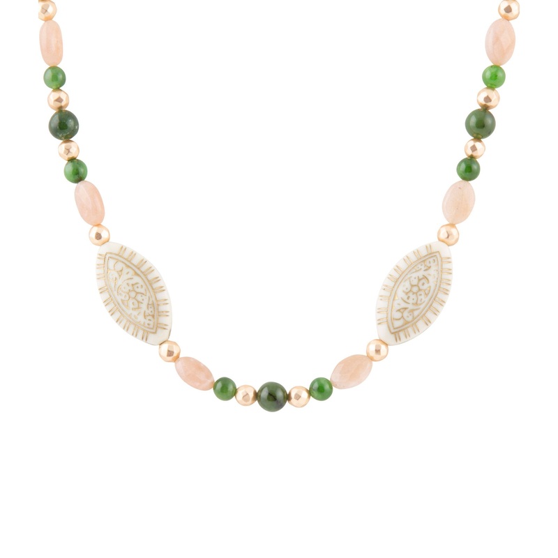 Green Jade and Pink Sunstone Golden Necklace