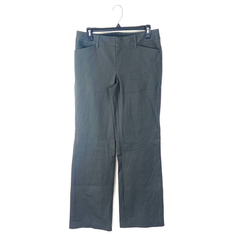 Brand new, donated from the designerEddie Bauer grey pant with angled front pockets, back pockets with buttons, belt loops, hidden front button and zipper closure, slightly curvy fit and wide leg bottomsSize 4Fabric Content: 92% Cotton, 8% SpandexEstimated