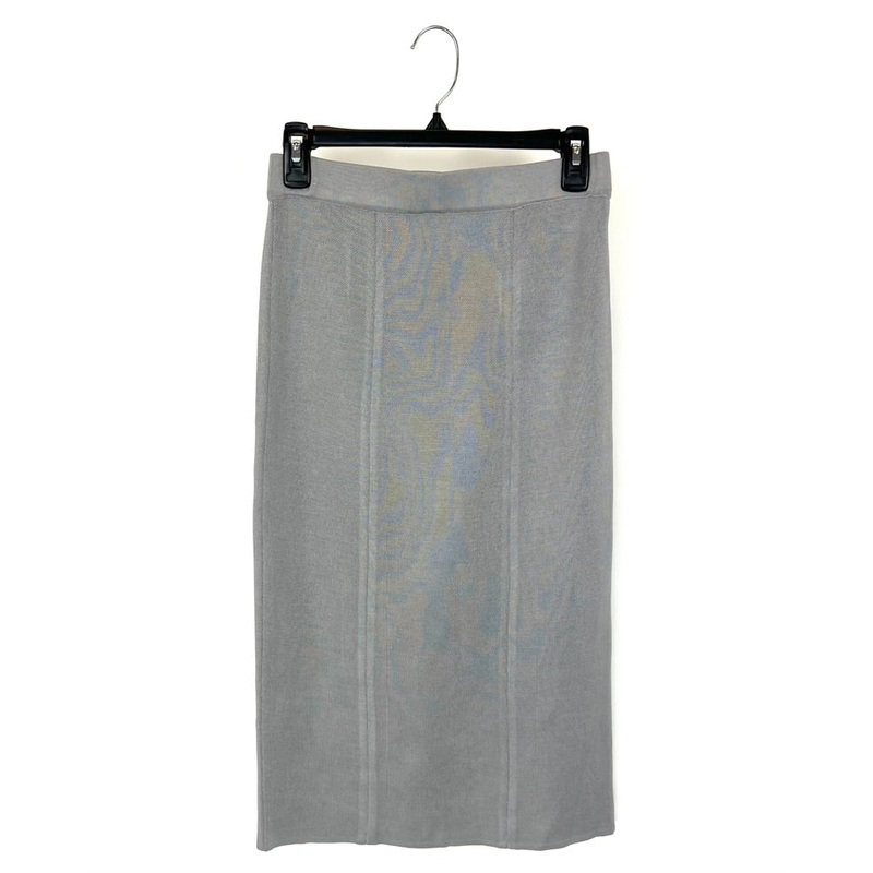 Brand new - donated from the designerMisook grey textured knit pencil skirt with an elastic stretch waistband*Disclaimer: hanger indents on front waistApproximately 28" from waist to hemEstimated Original Retail Price: $228*This is a sample piece donated f