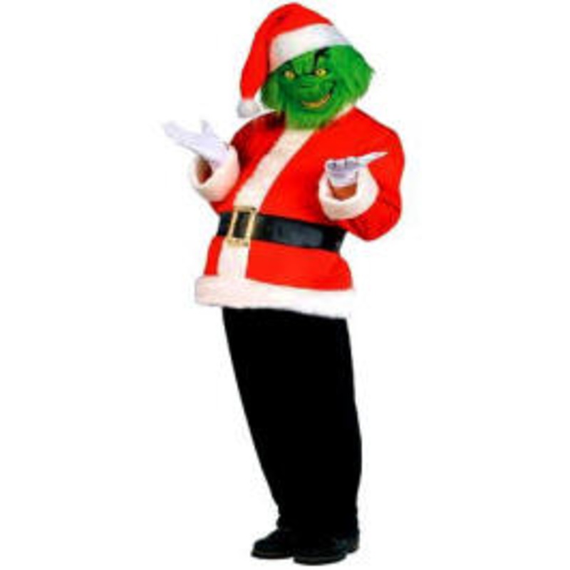 Includes: Plush jacket with plush fur accenting, belt, deluxe full over-the-head latex mask with hand painted detailing & attached hat.