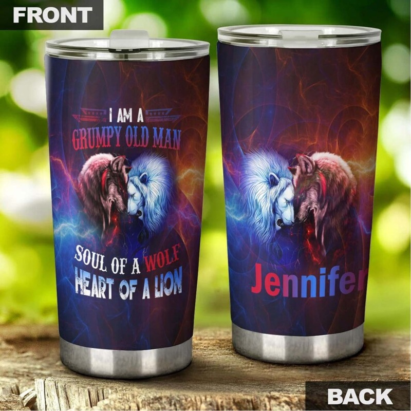Grumpy Old Man Soul of Wolf heart of Lion Personalized Tumbler - Wolf Lover Tumbler- Birthday gift - gift for him for dad - unique presentGift of Love: A meaningful gift for your friends, family members, wife/husband, bridesmaid/groomsmen, coworkers on bir