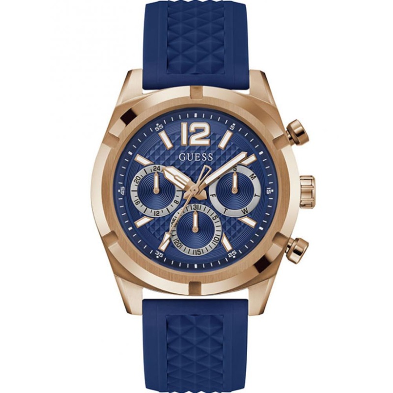 Guess Rose Gold Tone Multi-Function Black Silicone Strap Men’s Watch GW0729G3