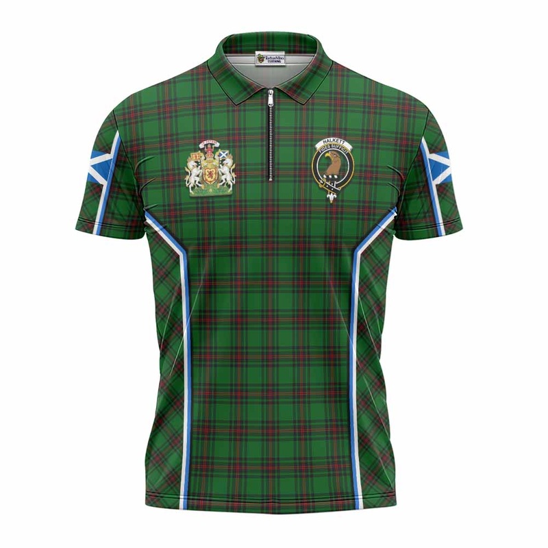 Halkett Tartan Crest Zipper Polo Shirt Scotland Coat of Arm Flag Style