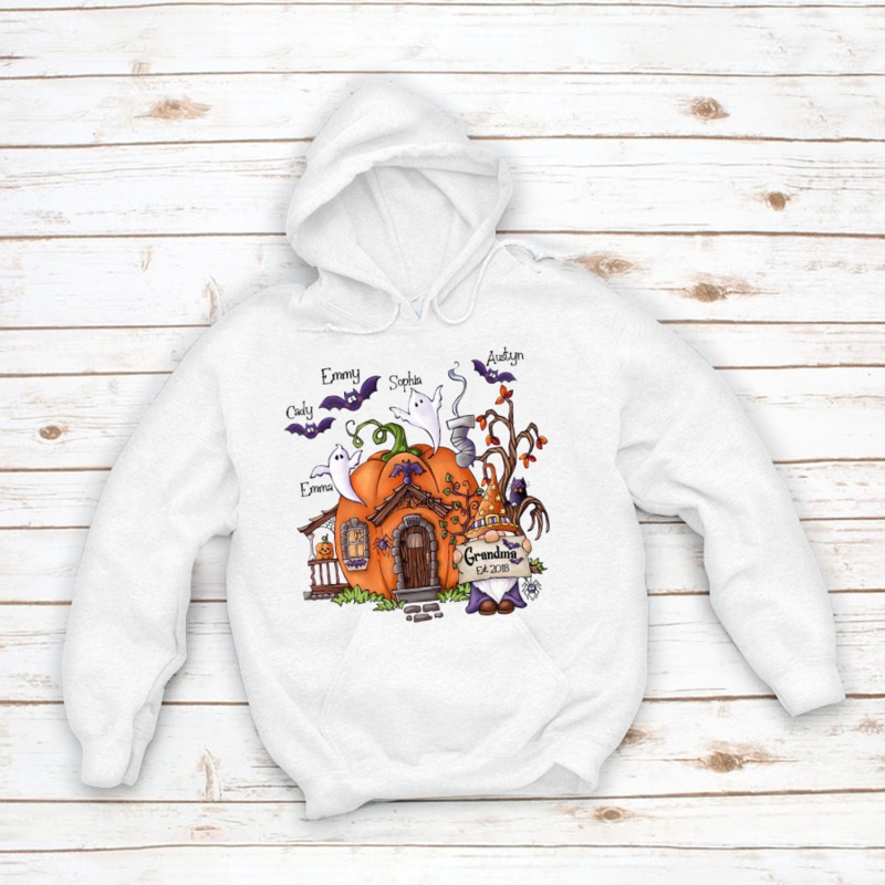 Halloween Grandma Est Kids Names ShirtThis hoodie is perfect to escape the cold. It covers everything from the hips to the neck, allows the person wearing it to stay toasty at all times. Plus, with the side-front pockets, the phone and the wallet can stay