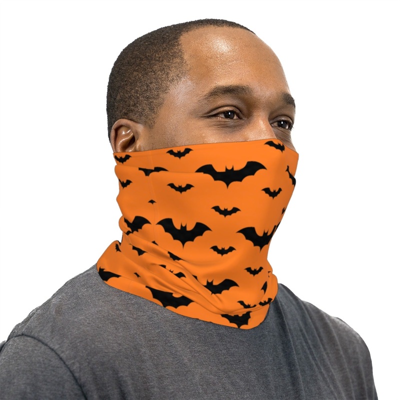 Halloween Orange and Black Bats Neck Gaiter Face Mask